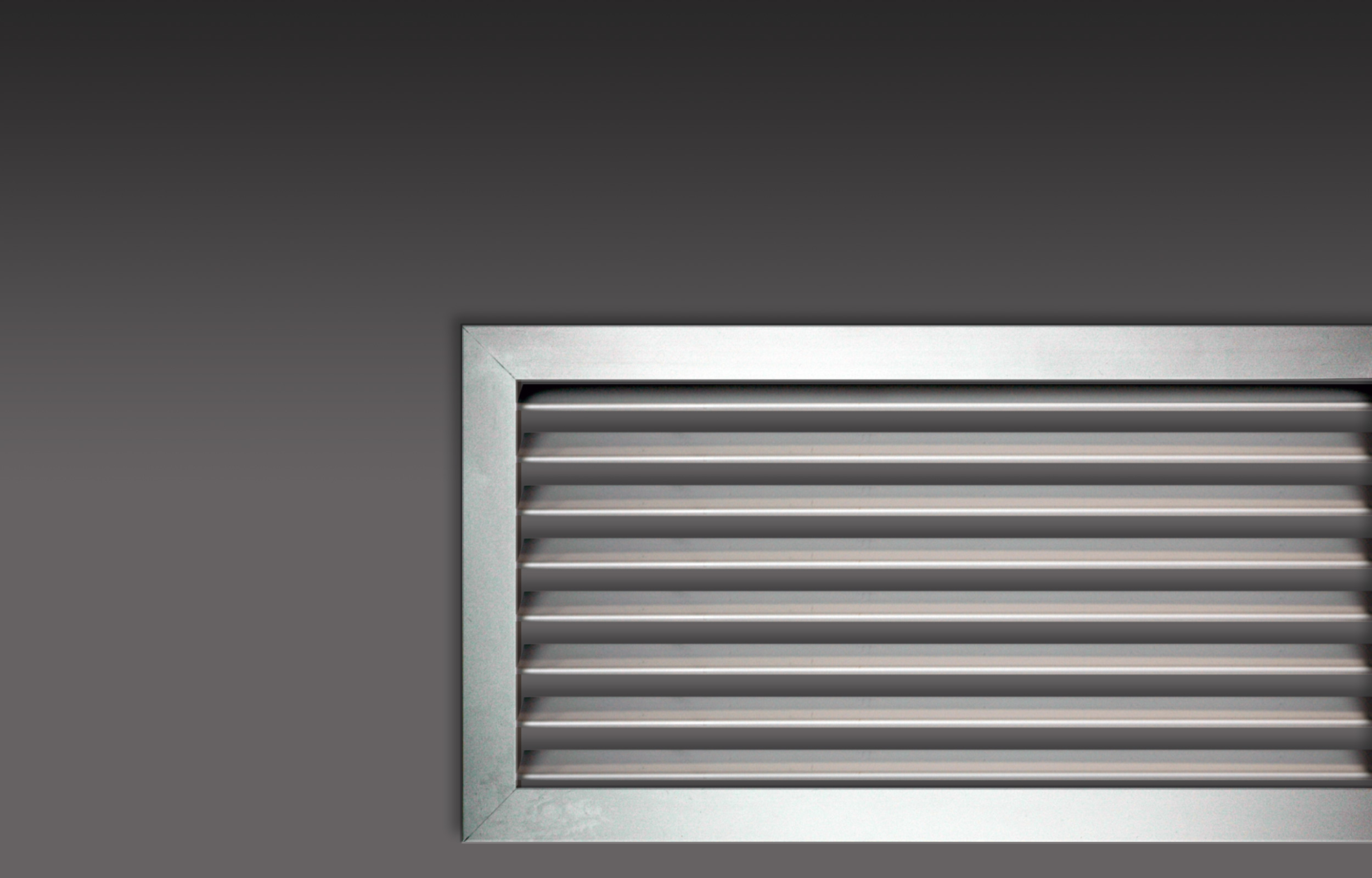 De construção em alumínio, com uma fiada simples de alhetas horizontais fixas a 45º, com aba de 25mm, apropriada para retorno e para extracção da ar.
